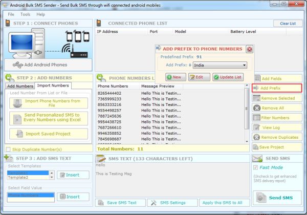 - Multi-Phone Support: Connect multiple Android phones to send out bulk SMS messages simultaneously.