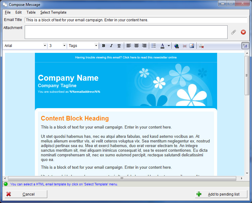 - Advanced Email Editor: Craft engaging emails using a powerful HTML editor with support for multimedia and custom designs.