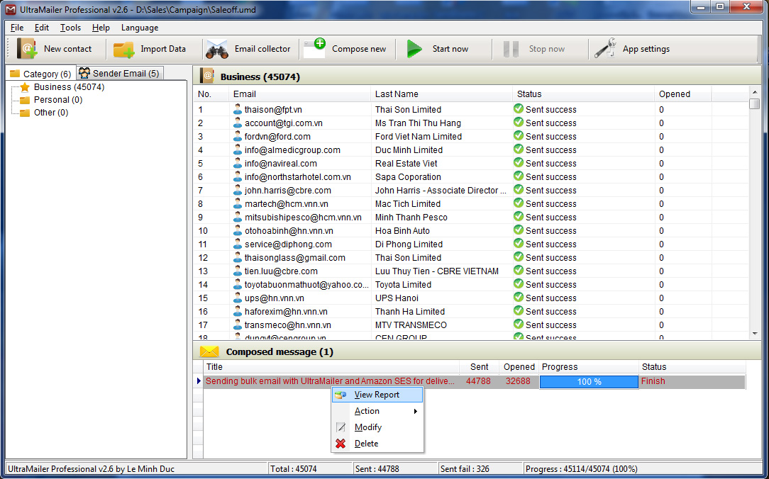 UltraMailer Professional allows users to manage extensive email lists, create personalized content, and track campaign performance with precise analytics. The software includes a built-in SMTP server and also supports external SMTPs, providing flexibility in how campaigns are deployed. Features like autoresponders, scheduled sending, and detailed reporting tools help streamline operations and increase engagement.